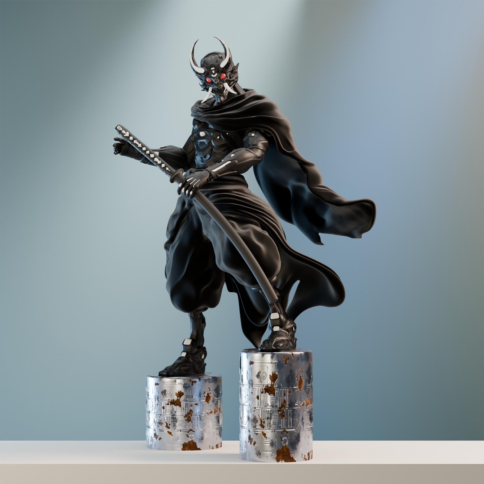 In the scarred borderlands of Exophera, where rusted metal ruins rise like fallen monuments of a forgotten age, a quiet legend persists. It speaks of a master caught between two worlds: Nekura, the Black Thorn. His body was shattered in the final wars, then rebuilt by lost machine remnants. His spirit, however, remained unbroken—bound by a silent vow to protect the last echoes of a dying world.